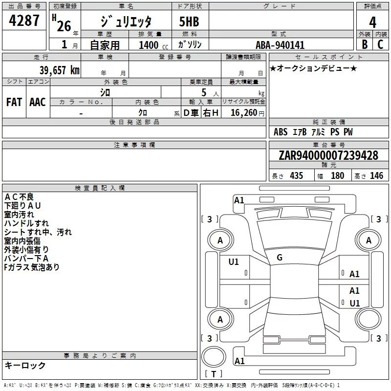 Alfa Romeo Giulietta с аукциона Японии TAA Shikoku лот № 4287