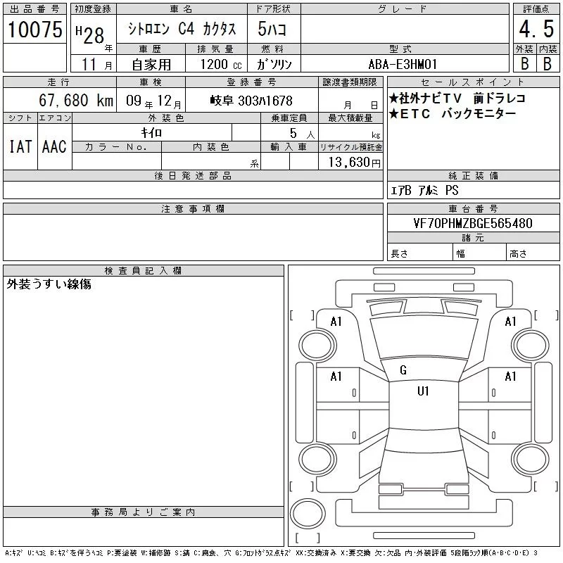 Citroen C4 с аукциона Японии CAA Gifu лот № 10075