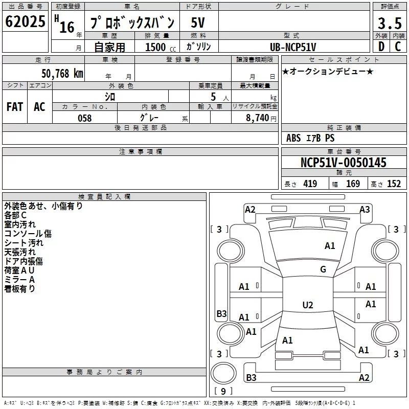 Toyota PROBOX с аукциона Японии TAA Shikoku лот № 62025