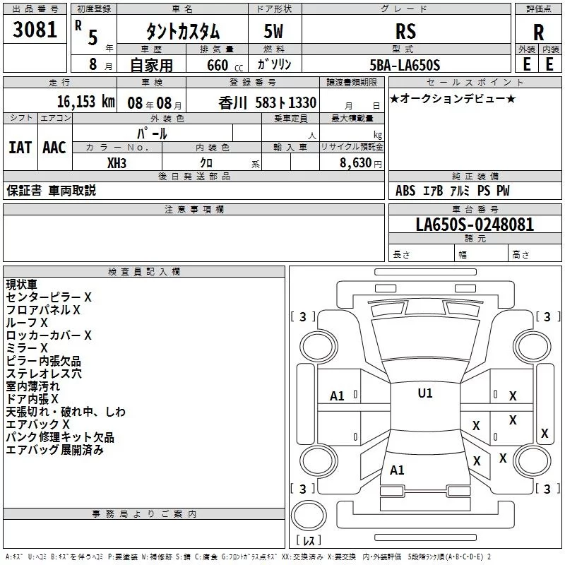 Daihatsu TANTO с аукциона Японии TAA Shikoku лот № 3081