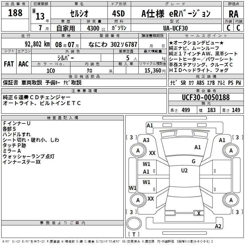Toyota CELSIOR с аукциона Японии TAA Kinki лот № 188