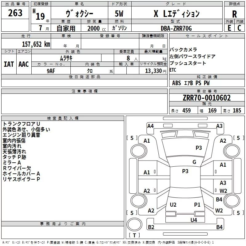 Toyota VOXY с аукциона Японии TAA Kinki лот № 263