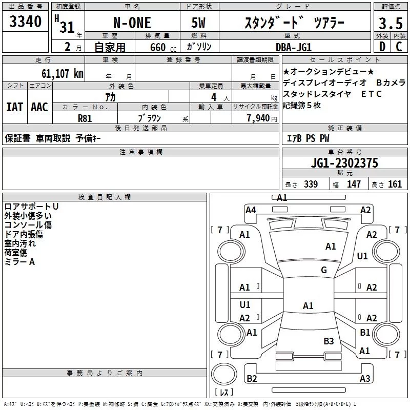 Honda N ONE с аукциона Японии TAA Kinki лот № 3340