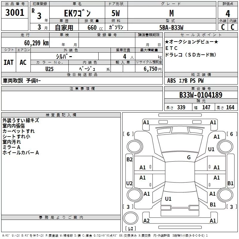 Mitsubishi EK WAGON с аукциона Японии TAA Kinki лот № 3001
