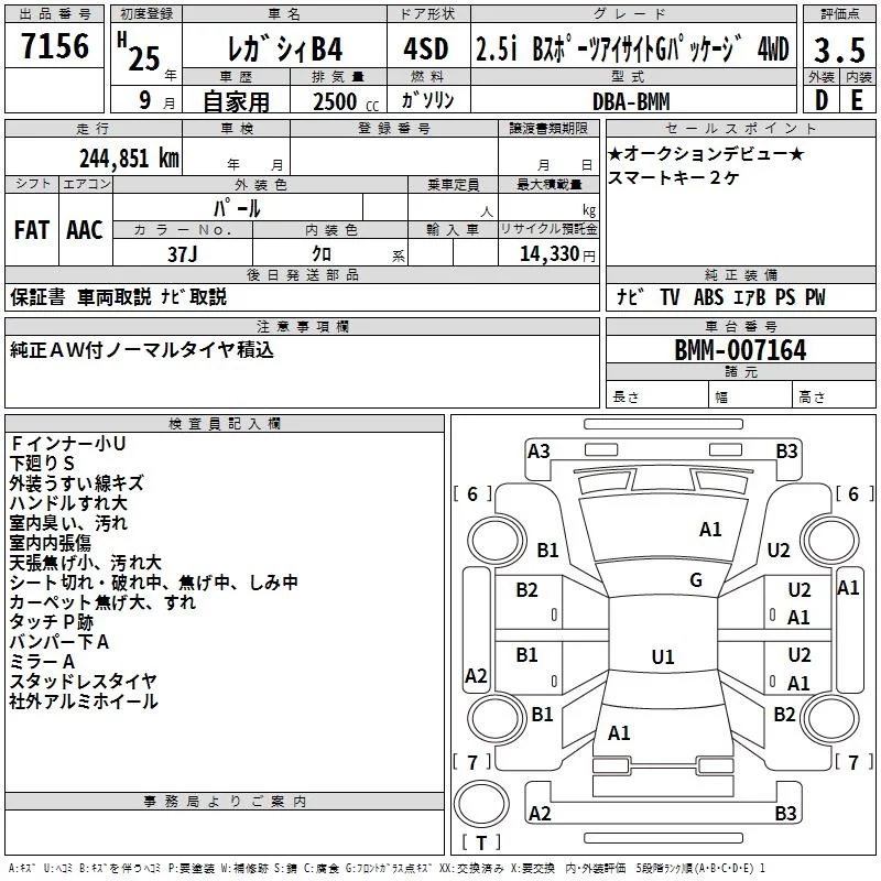 Subaru LEGACY B4 с аукциона Японии TAA Hiroshima лот № 7156