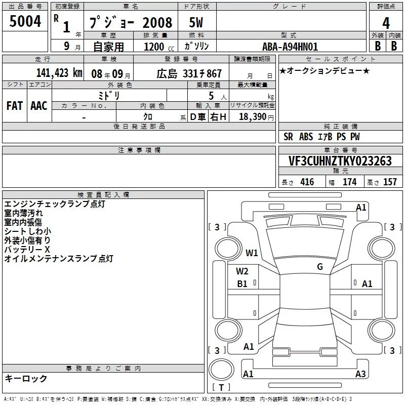Peugeot 2008 с аукциона Японии TAA Hiroshima лот № 5004