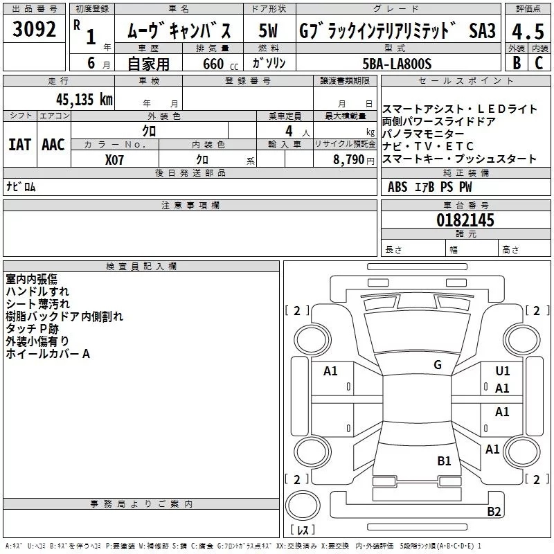 Daihatsu MOVE CANBUS с аукциона Японии TAA Kinki лот № 3092