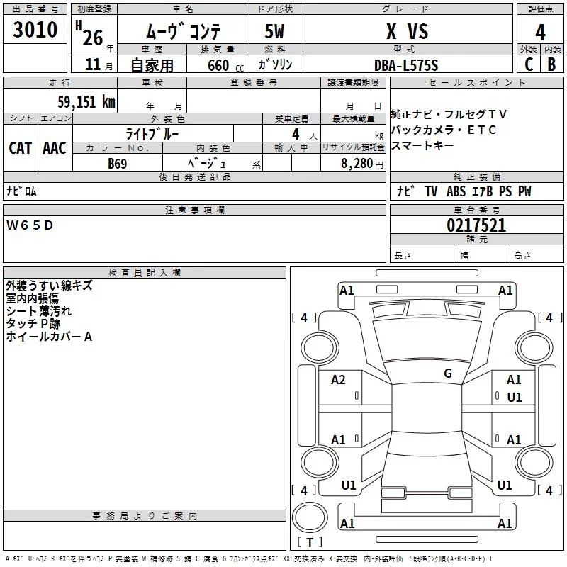 Daihatsu MOVE CONTE с аукциона Японии TAA Kinki лот № 3010