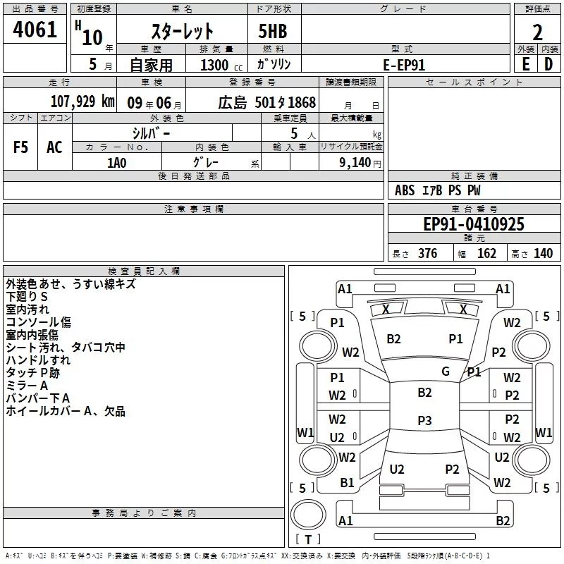 Toyota STARLET с аукциона Японии TAA Hiroshima лот № 4061