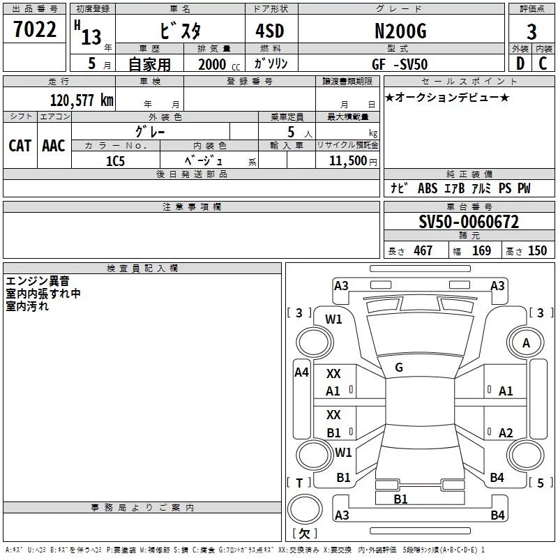 Toyota VISTA с аукциона Японии TAA Kinki лот № 7022