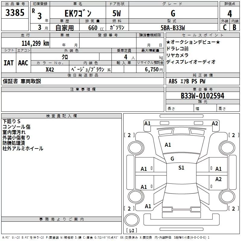 Mitsubishi EK WAGON с аукциона Японии TAA Kinki лот № 3385