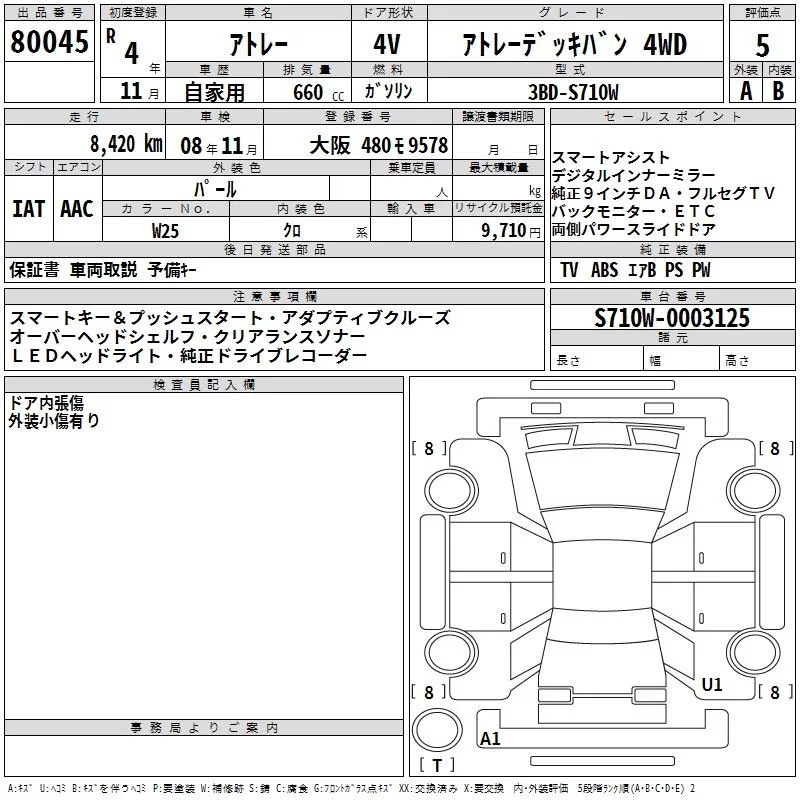 Daihatsu ATRAI VAN с аукциона Японии TAA Kinki лот № 80045