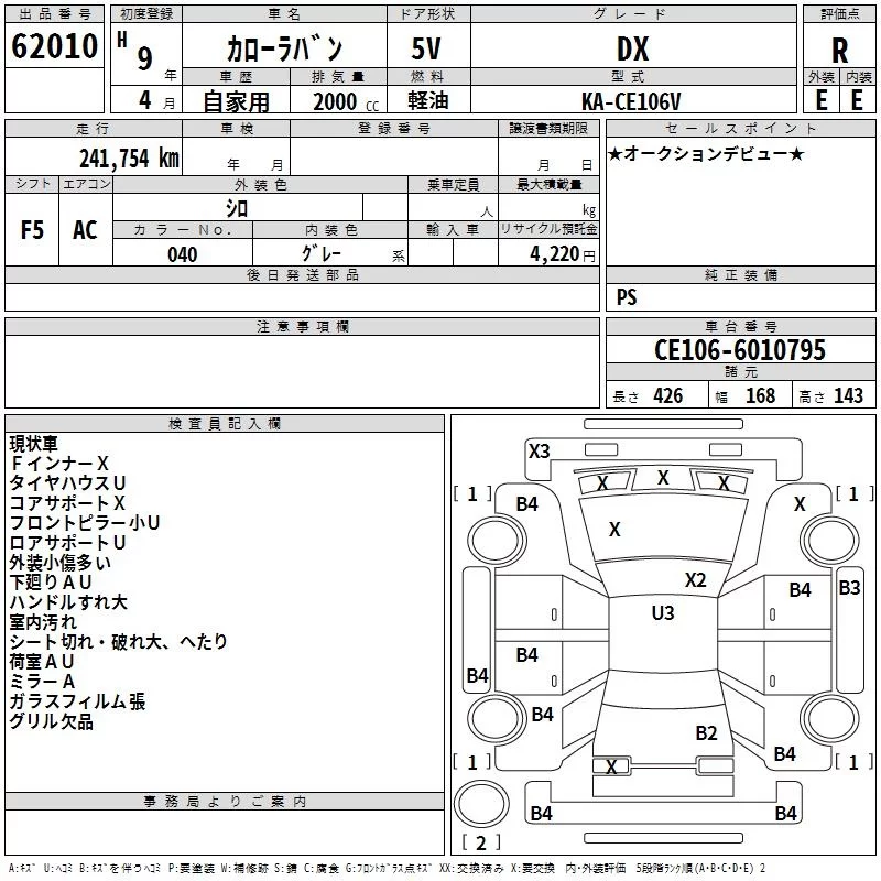 Toyota COROLLA VAN с аукциона Японии TAA Hiroshima лот № 62010