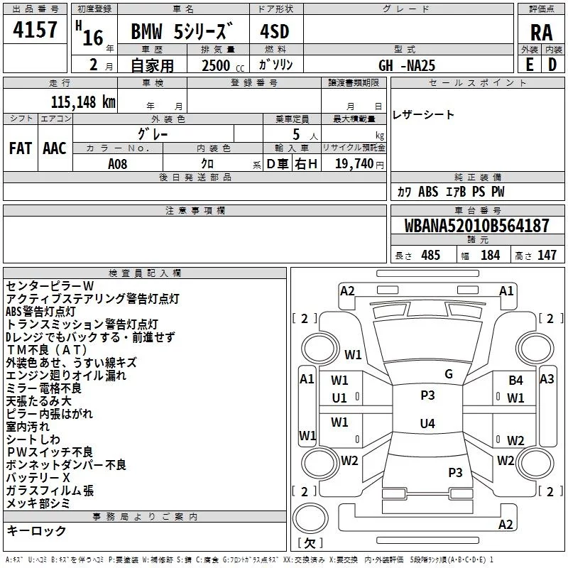 BMW 5-Series с аукциона Японии TAA Hiroshima лот № 4157
