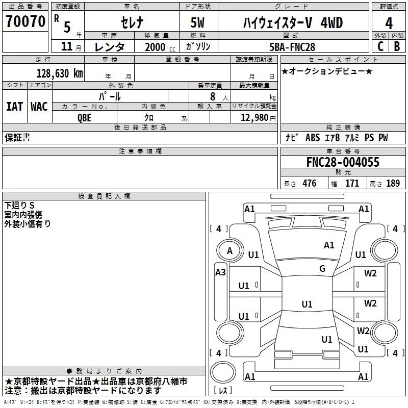 Nissan SERENA с аукциона Японии TAA Kinki лот № 70070