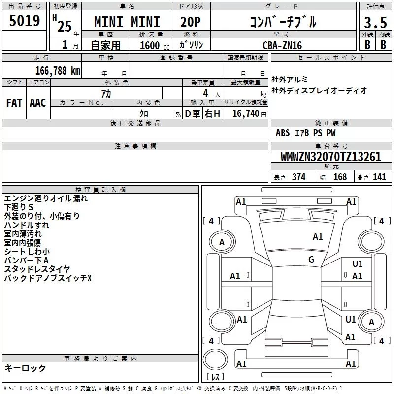 BMW MINI с аукциона Японии TAA Hiroshima лот № 5019