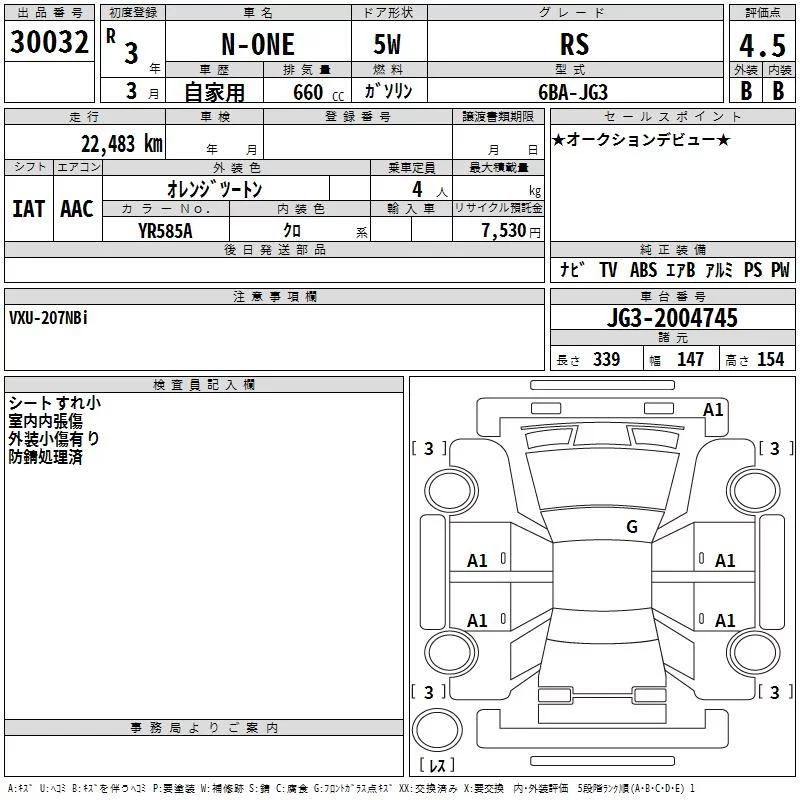Honda N ONE с аукциона Японии TAA Hiroshima лот № 30032