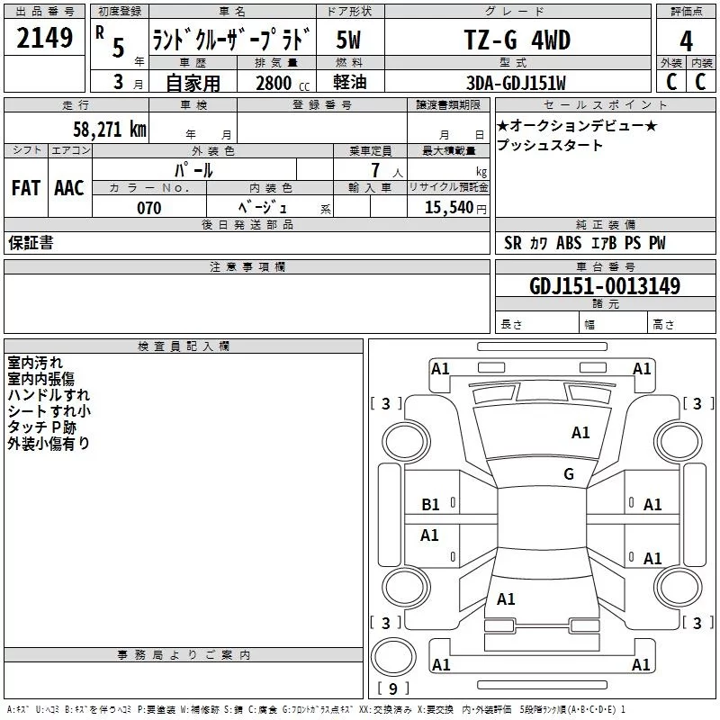 Toyota LAND CRUISER PRADO с аукциона Японии TAA Hiroshima лот № 2149
