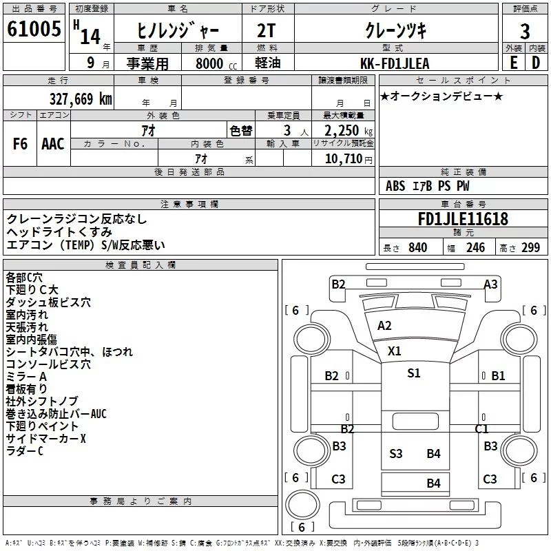 Hino RANGER с аукциона Японии TAA Hiroshima лот № 61005