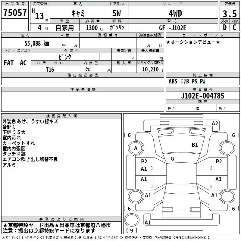 Toyota CAMI с аукциона Японии TAA Kinki лот № 75057
