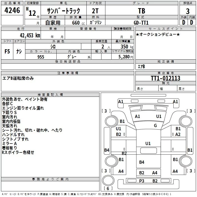 Subaru SAMBAR с аукциона Японии TAA Hiroshima лот № 4246