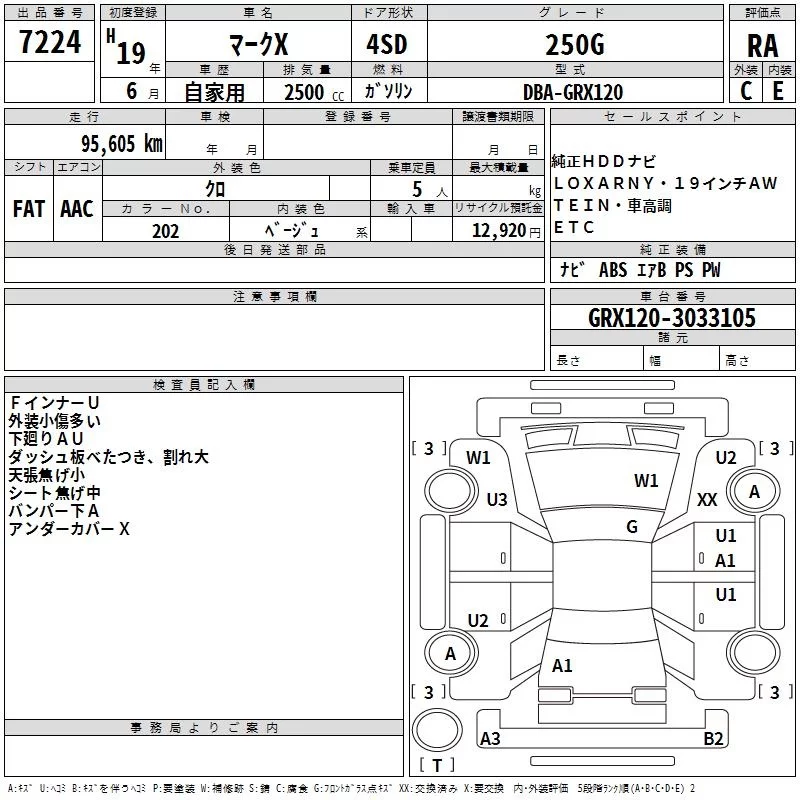 Toyota MARK X с аукциона Японии TAA Kinki лот № 7224