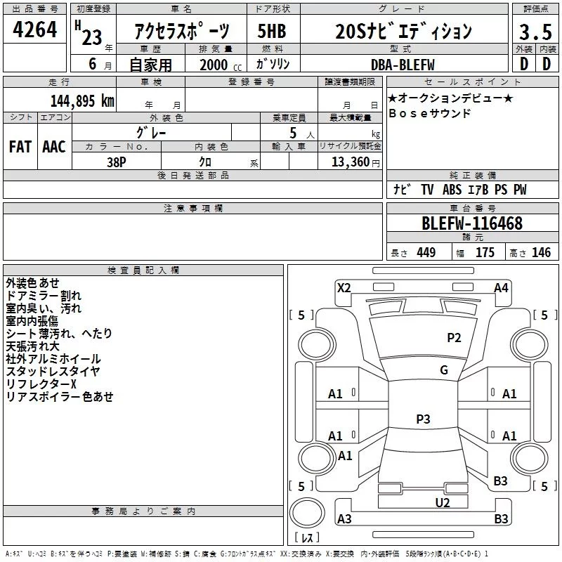 Mazda AXELA с аукциона Японии TAA Hiroshima лот № 4264