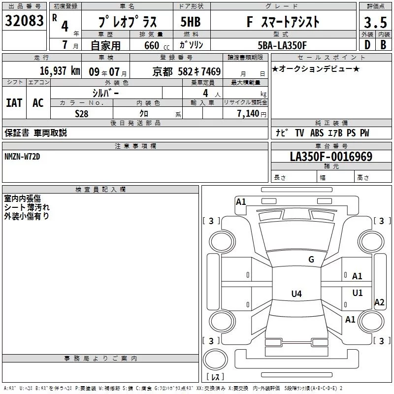 Subaru PLEO PLUS с аукциона Японии TAA Kinki лот № 32083