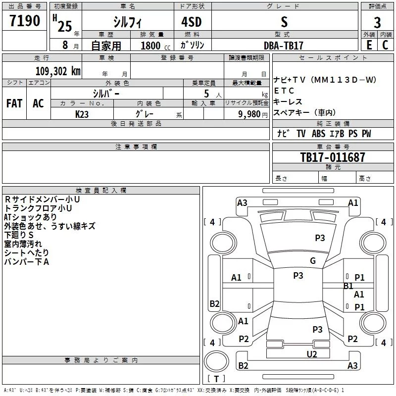 Nissan SYLPHY с аукциона Японии TAA Hiroshima лот № 7190