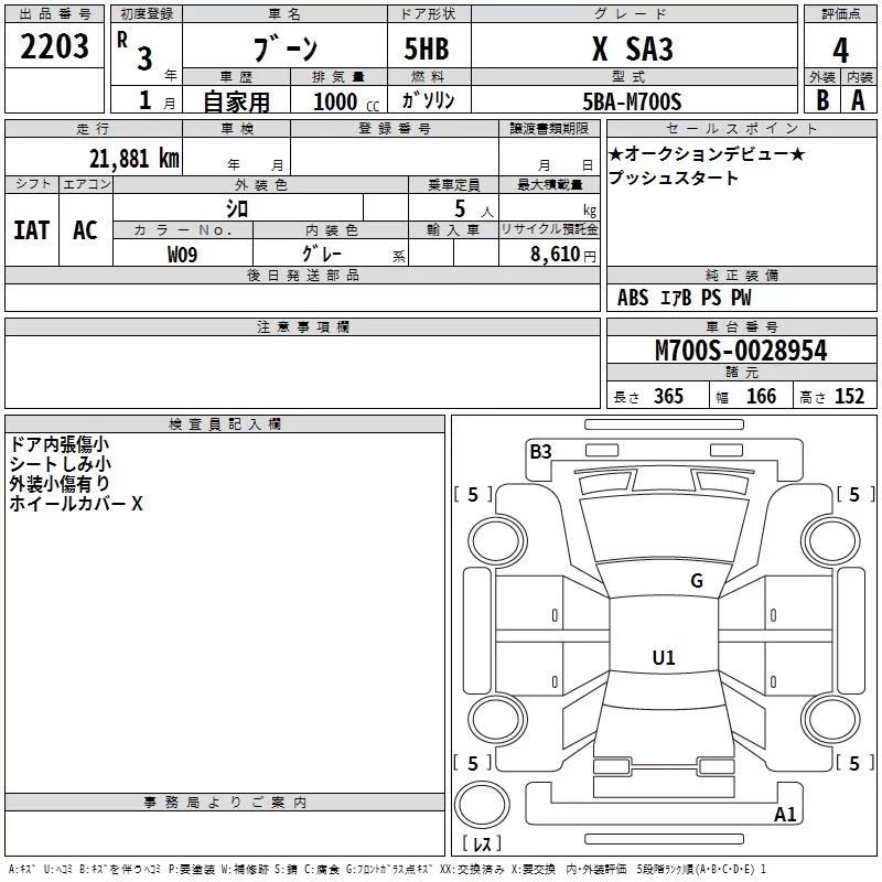 Daihatsu Boon с аукциона Японии TAA Hiroshima лот № 2203
