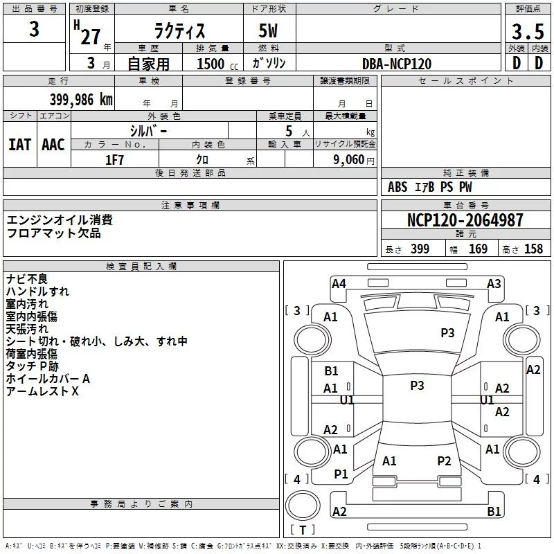 Toyota RACTIS с аукциона Японии TAA Minami Kyushu лот № 3