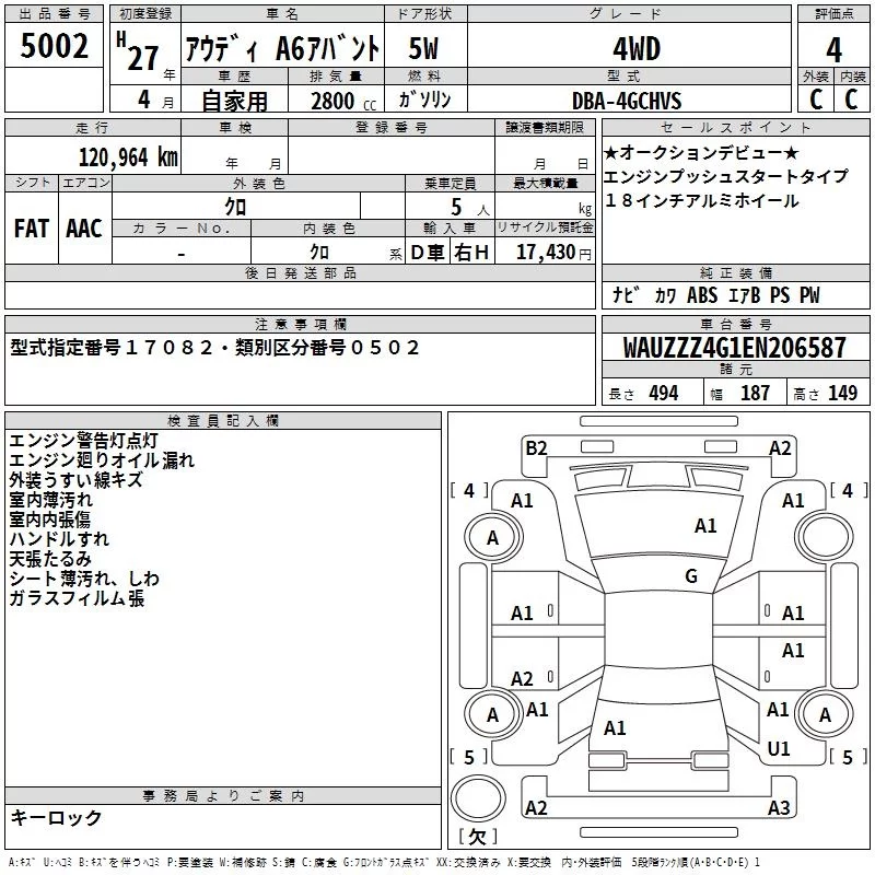 Audi A6 с аукциона Японии TAA Minami Kyushu лот № 5002