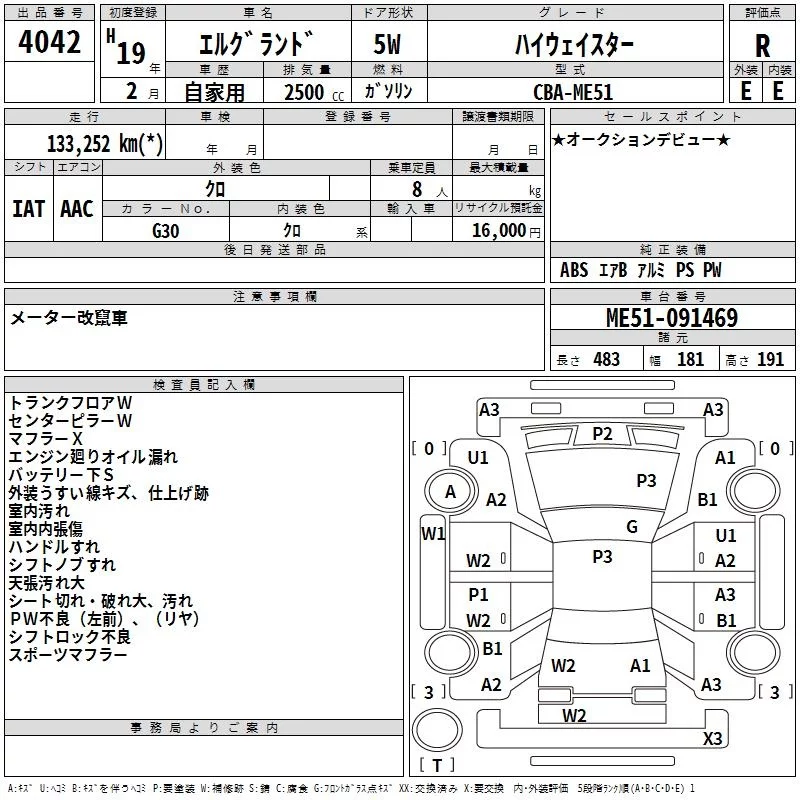 Nissan ELGRAND с аукциона Японии TAA Minami Kyushu лот № 4042