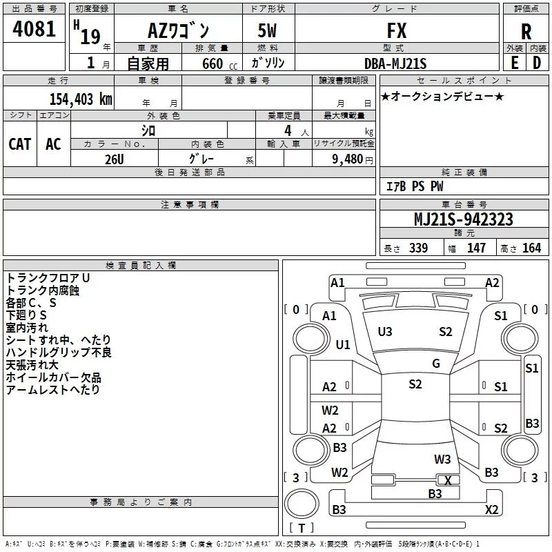 Mazda AZ WAGON с аукциона Японии TAA Minami Kyushu лот № 4081