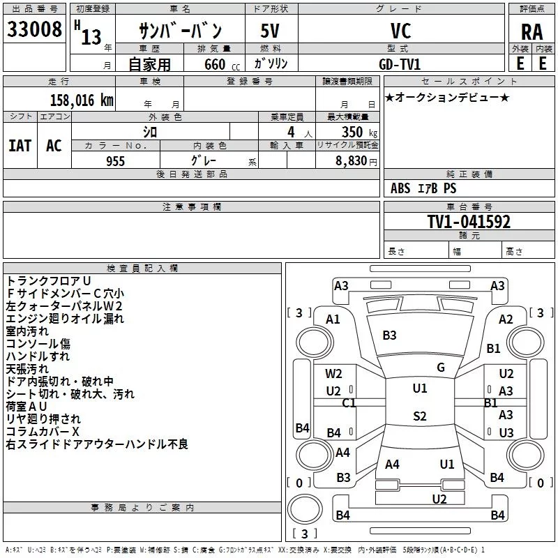 Subaru SAMBAR с аукциона Японии TAA Minami Kyushu лот № 33008