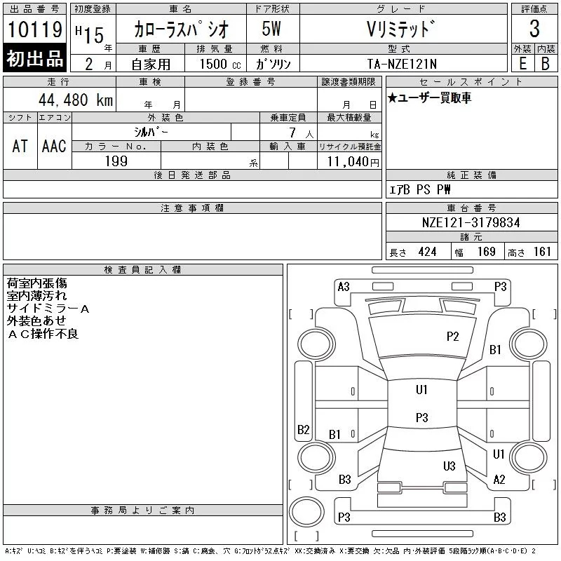 Toyota COROLLA SPACIO с аукциона Японии CAA Tokyo лот № 10119