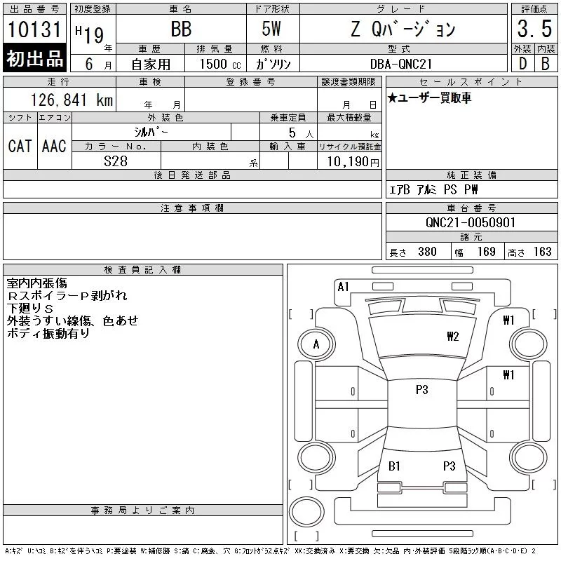 Toyota BB с аукциона Японии CAA Tokyo лот № 10131