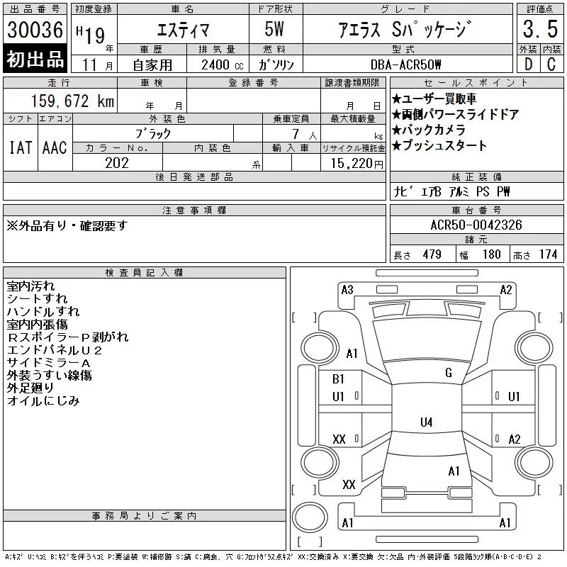 Toyota ESTIMA с аукциона Японии CAA Tokyo лот № 30036