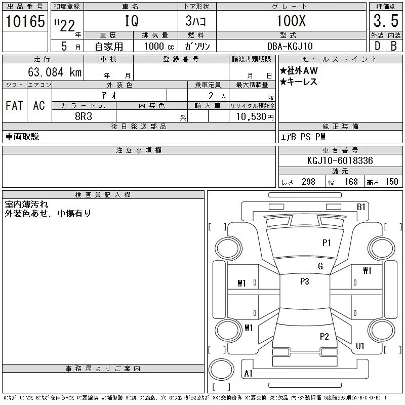 Toyota IQ с аукциона Японии CAA Tokyo лот № 10165