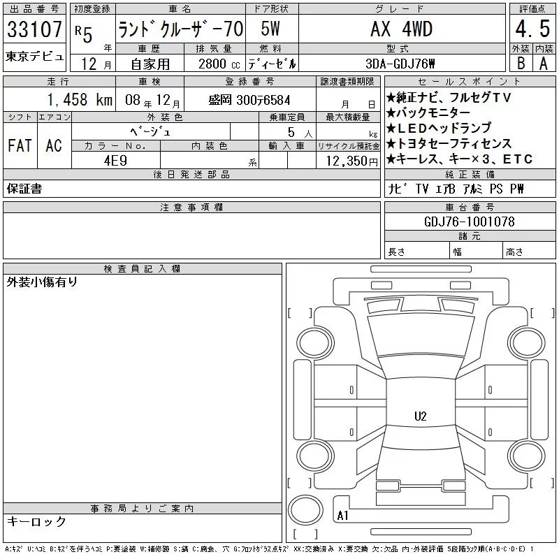 Toyota LAND CRUISER с аукциона Японии CAA Tokyo лот № 33107