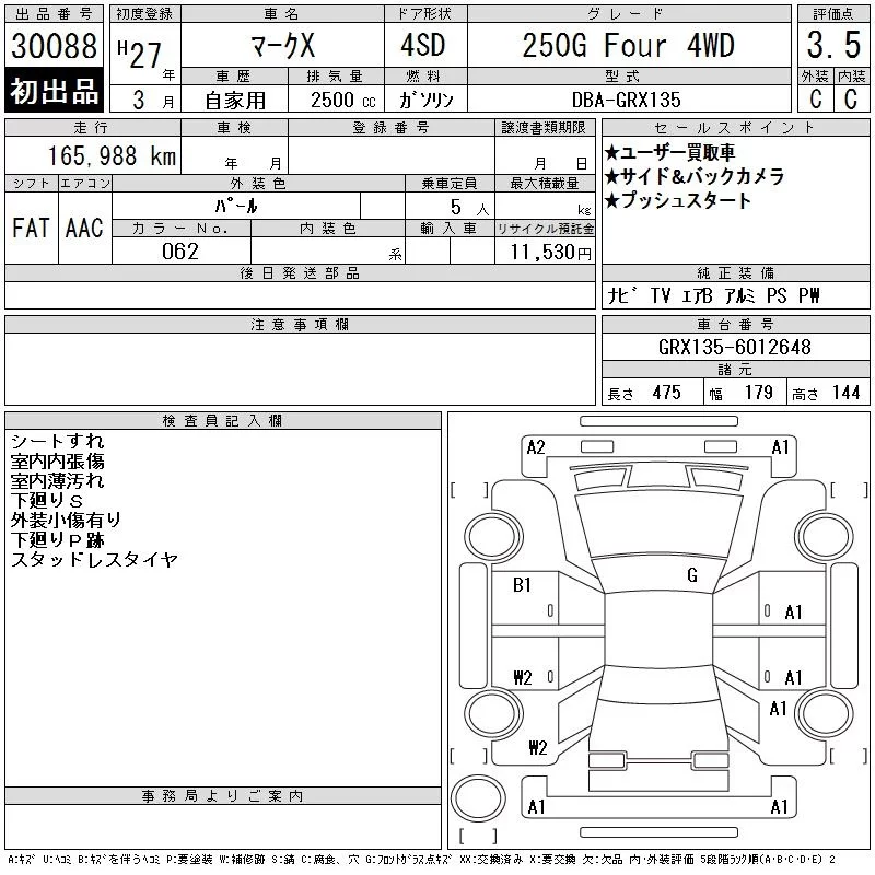Toyota MARK X с аукциона Японии CAA Tokyo лот № 30088