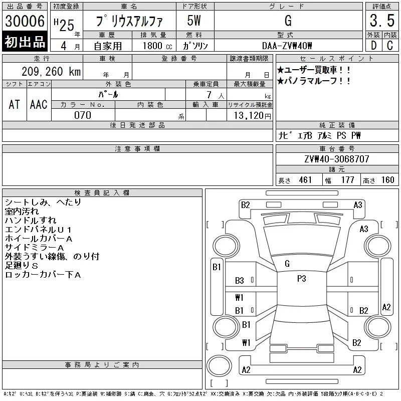 Toyota PRIUS ALPHA с аукциона Японии CAA Tokyo лот № 30006