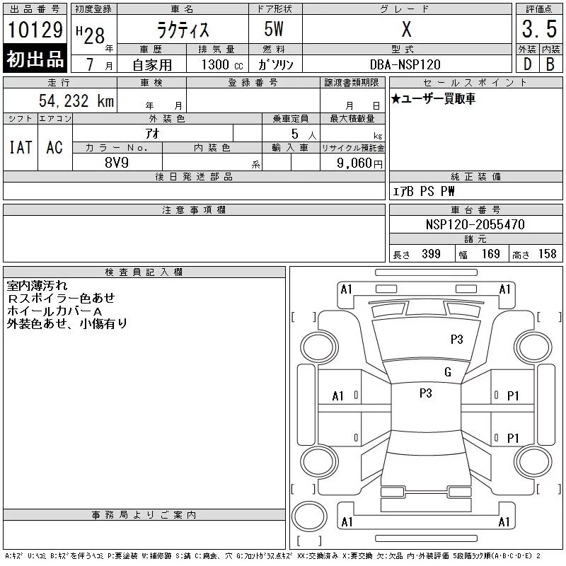 Toyota RACTIS с аукциона Японии CAA Tokyo лот № 10129