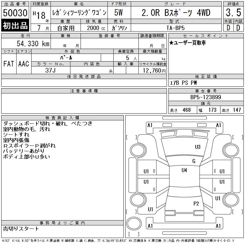 Subaru LEGACY с аукциона Японии CAA Tokyo лот № 50030