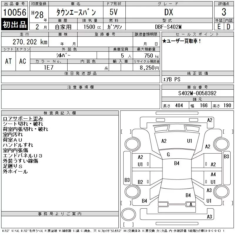 Toyota TOWN ACE VAN с аукциона Японии CAA Tokyo лот № 10056