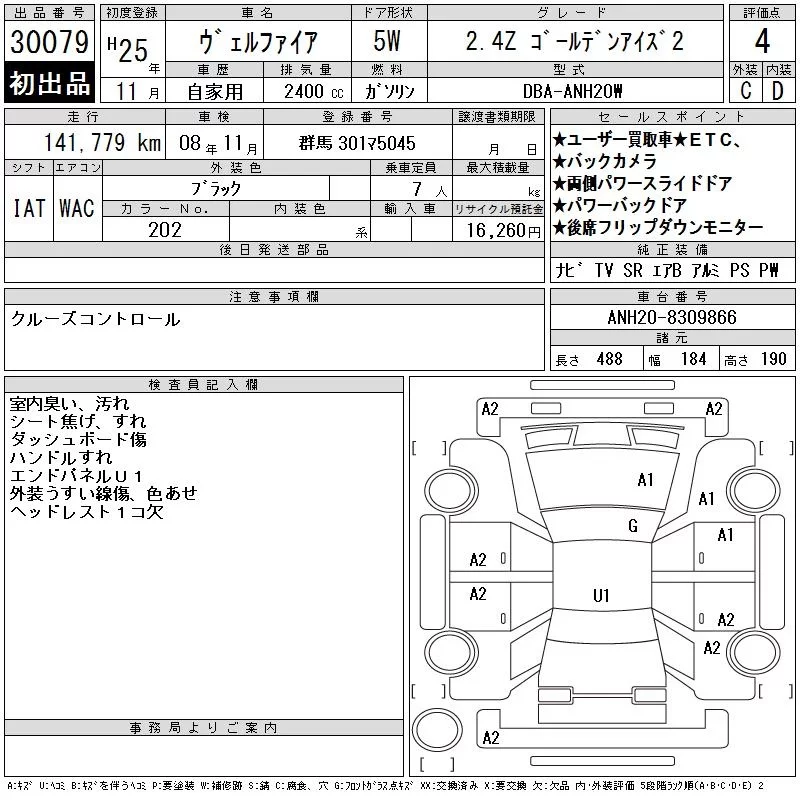 Toyota VELLFIRE с аукциона Японии CAA Tokyo лот № 30079