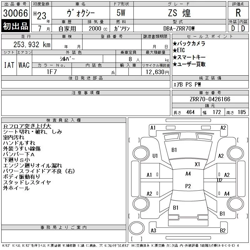 Аукционный лист  VOXY лот № 30066