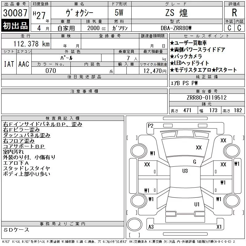 Toyota VOXY с аукциона Японии CAA Tokyo лот № 30087