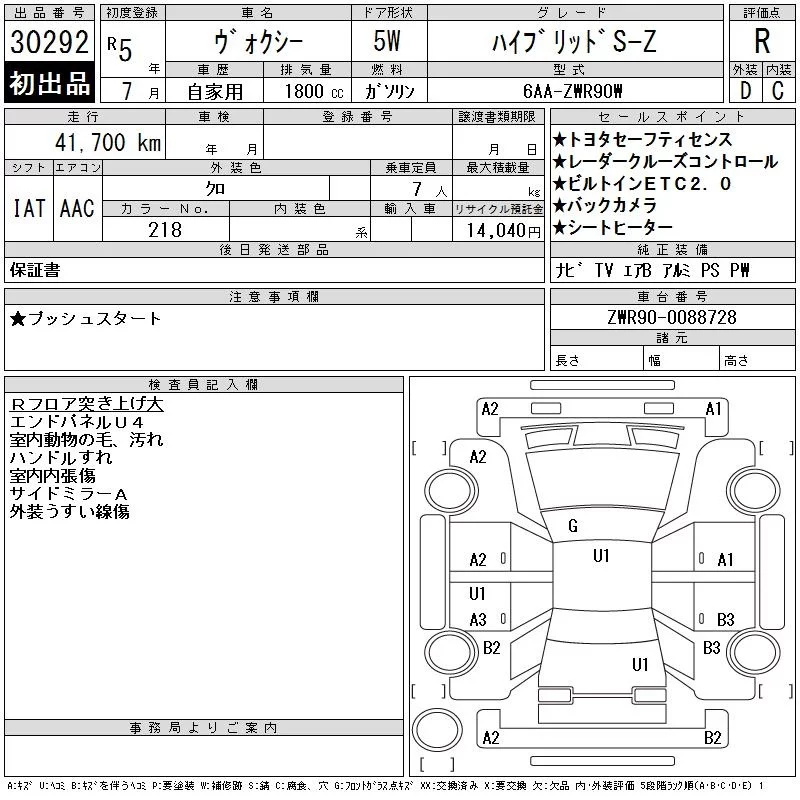 Toyota VOXY с аукциона Японии CAA Tokyo лот № 30292