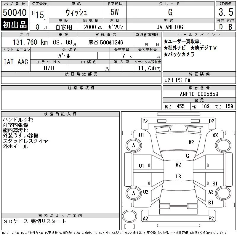 Toyota WISH с аукциона Японии CAA Tokyo лот № 50040
